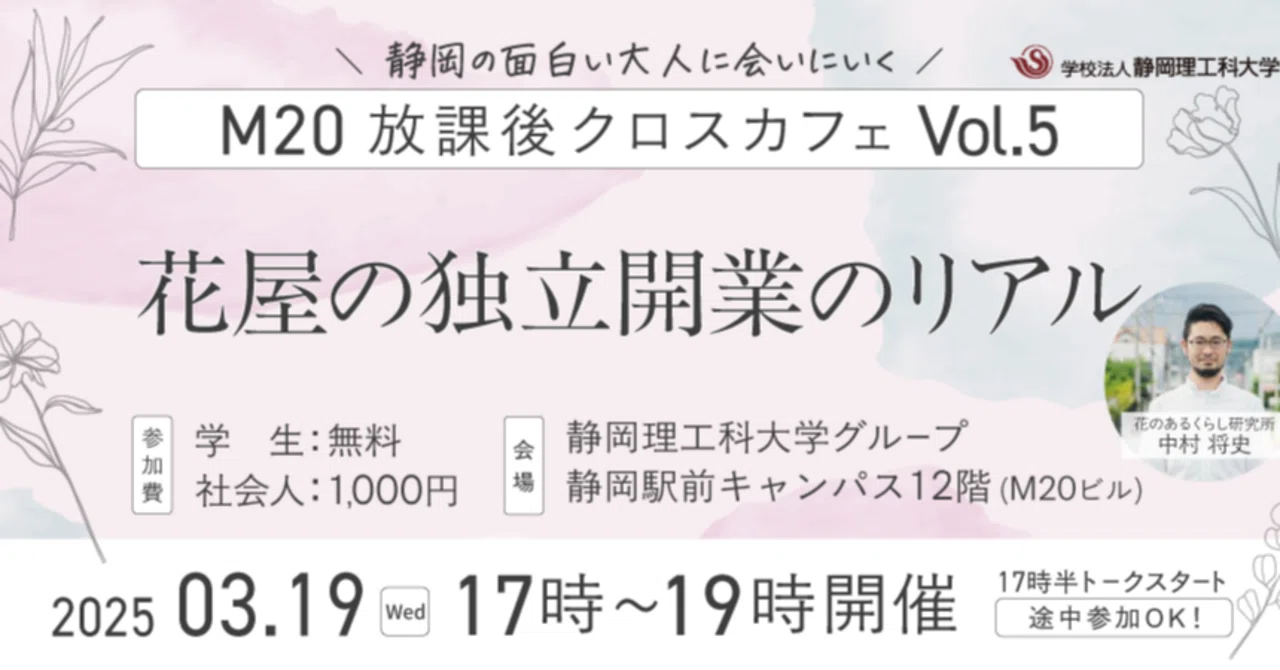 中村さんには、今年の3月に静岡理工科大学で開催した『M20 放課後クロスカフェ』セミナーで登壇してもらったんですが、その時の「花屋さんの業界をより良くしたい」というお話が、すごく刺さったんです!